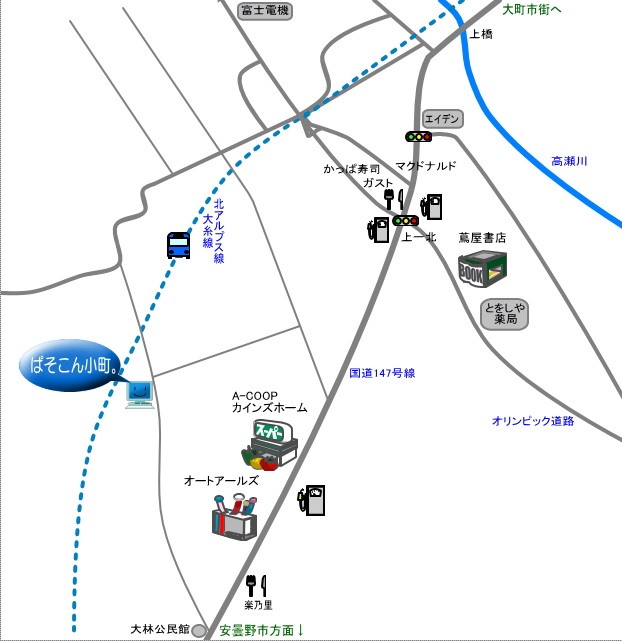 所在地 〒398-0004 長野県大町市常盤4877-11 TEL 0261-23-3320 信濃常盤駅から北へ車で2分 南大町駅から南へ車で4分 アクセス…ネットナビは「ぱそこん小町。」で検索していただくと表示されます。または下の地図をクリックしてください。